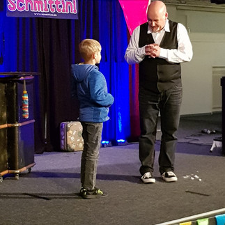 "Im April war "Der zauberhafte Schmittini" für eine Kinderveranstaltung in unserer Kirche. In einem Wort: bezaubernd. Die Kinder hatten mega Spaß. Schmittini hat von Anfang bis zum Ende die Kinder gehabt und mit einbezogen. Er hat die Kids auf die Bühne geholt - und: die Kids hatten überhaupt keine Berührungsängste oder Scheu mit einzusteigen. Eher im Gegenteil. Es war eine tolle Stimmung, Dynamik und ein ansprechendes Programm. Nicht nur was für Kids, sondern auch die Erwachsenen hatten ihre Freude an dem Auftritt. Ein wunderschönere Nachmittag für alle Beteiligten."