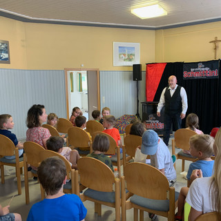 "Wir hatten für unsere Tochter zum 7. Geburtstag etwas Besonderes gesucht, nachdem sie aufgrund von Corona zwei Jahre keinen Kindergeburtstag feiern konnte. So kamen wir auf den "Zauberhaften Schmittini". Es war ein herrlicher Tag und es waren 10 Mädels eingeladen, die alle schon den Zauberer sehnsüchtig erwarteten, v.a. da wir zuvor für einen späteren Zaubertrick ein Zauberrequistit zusammen gebastelt hatten. Als es endlich losging, war die Stimmung von Anfang an bei den Kindern super. Erst sangen sie zusammen mit dem "Zauberhaften Schmittini" ein tolles Geburtstagslied und waren danach auch gleich schon Mitten in einer wunderbaren Zaubershow voller Überraschungen und Spaß. Als auch noch der lustige Vogel Schärrar mitzauberte, wurden die Lachmuskeln noch mehr strapaziert. Es waren alle, inklusive der Erwachsenen, verzaubert. Als am Schluss der "Zauberhafte Schmittini" auch noch den Kindern zwei Kunststücke beibrachte und seine Zaubertricks verriet, war der Nachmittag perfekt."