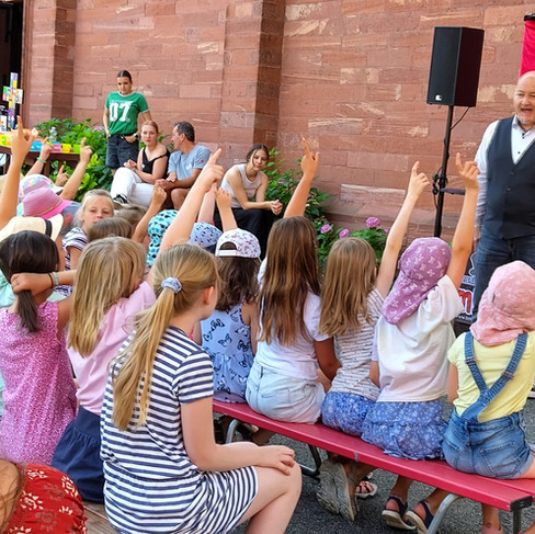 Das ist eine Kinderveranstaltung der evangelischen Kirche Ladenburg, unter deren Motto einmal im Jahr auch ein Sommerfest rund um die Kirche stattfindet.