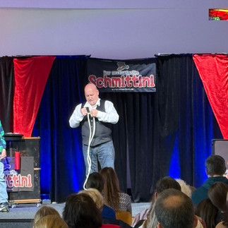Der Morgen war zwar offiziell als "Gottesdienst für Familien" angekündigt, mein Programm durfte und sollte aber gerne in erster Linie unterhaltenden Charakter haben und ich musste nicht explizit "christliche Zauberkunst" (so es denn überhaupt so etwas gibt) präsentieren. So habe ich lediglich ein Kunststück mit inhaltlichen Bezug zu diesen "heiligen Hallen" eingebaut, das eher in so einen "gottesdienstlichen Rahmen" passt: Meine Seilroutine, in der ich erkläre, warum es sinnvoll ist, an Gott zu glauben.